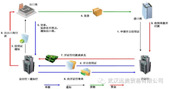 在信用證中,扮演著主要角色的有買方、賣方、銀行。信用證的流程是:買方先將貨款交存銀行,由銀行開立信用證,通知異地賣方開戶銀行轉(zhuǎn)告賣方,賣方按合同和信用證規(guī)定的條款發(fā)貨,銀行代買方付款。
