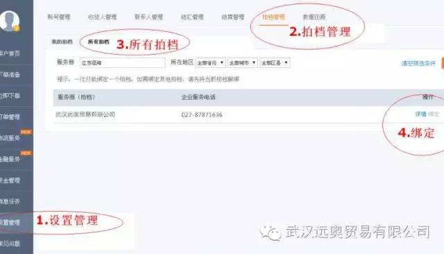 2、登陸{一達通操作后臺}在{設置管理}-{拍檔管理}中綁定我們公司。
