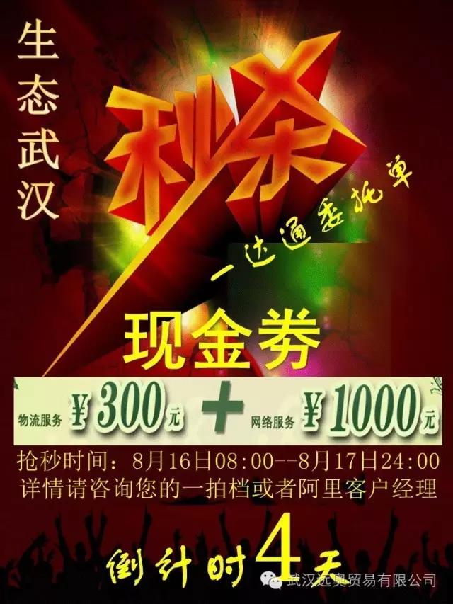 阿里巴巴一達(dá)通委托單特惠秒殺活動開始啦!客戶在8月16日08:00-8月17日24:00期間,在一達(dá)通下委托書,且在本月通關(guān)的企業(yè),都將同時享有物流服務(wù)現(xiàn)金用劵300元和網(wǎng)絡(luò)服務(wù)現(xiàn)金卷1000元。